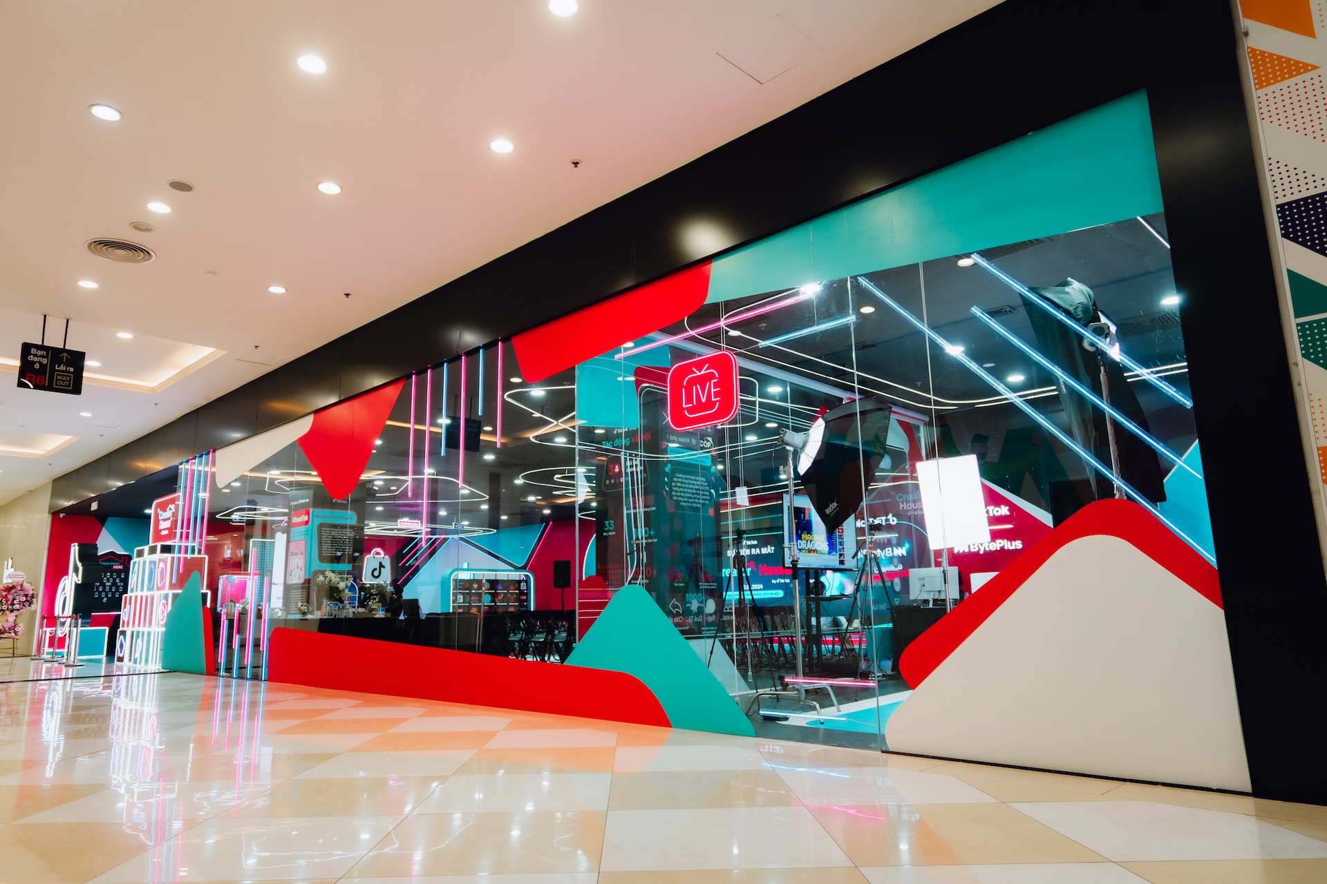 • Phòng LIVE khép kín (26m²): Trang bị hệ thống máy quay, âm thanh, ánh sáng và thiết bị phát sóng hiện đại, đáp ứng các tiêu chuẩn chuyên nghiệp về livestream. Đây là điểm nhấn đặc biệt dành cho cộng đồng sáng tạo nội dung, đặc biệt là các nhà sáng tạo tiếp thị liên kết trên TikTok Shop.