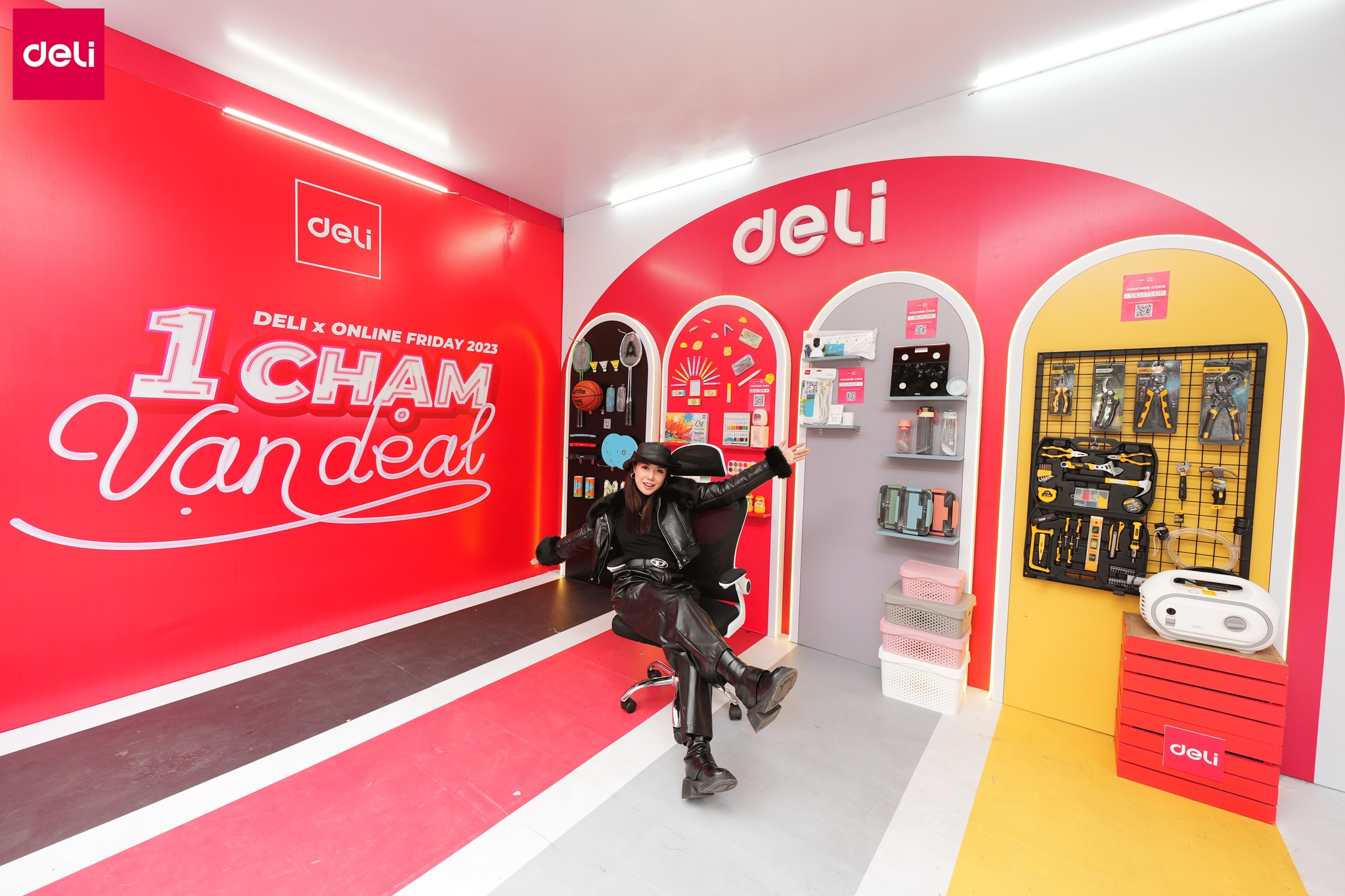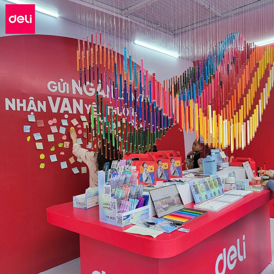 Gian hàng của Deli không chỉ là nơi trưng bày các sản phẩm nổi bật mà còn là không gian sáng tạo với nhiều khu vực trải nghiệm độc đáo như khu check-in nhận quà, khu trải nghiệm sản phẩm, khu vực viết lời nhắn và khu livestream trực tiếp.